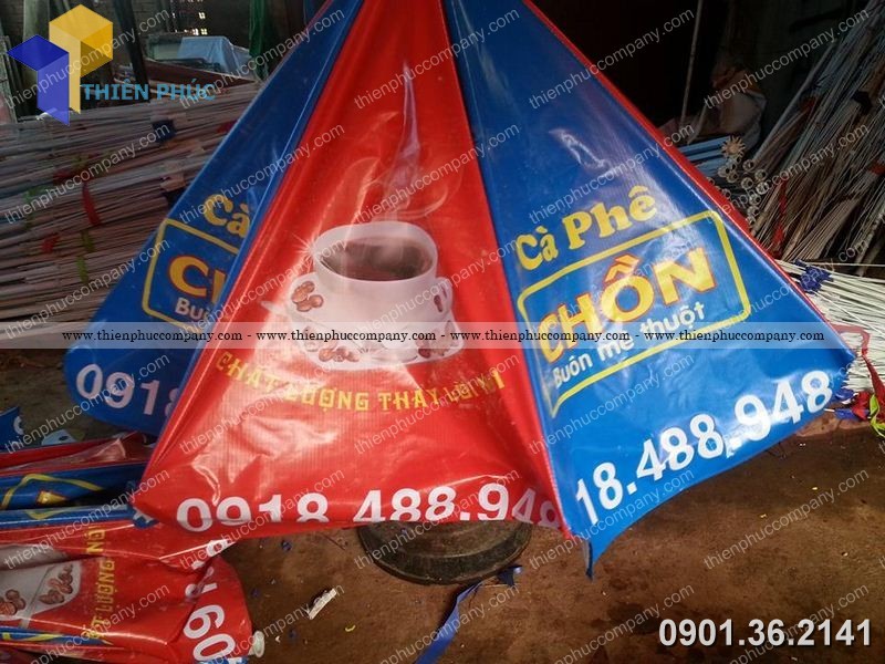 Chỉ với một chi phí rất thấp bạn có thể sở hữu được những chiếc ô dù quảng cáo, không những dùng để che mưa che nắng, mà ô dù quảng cáo còn là vật phẩm trang trí không gian tổ chức sự kiện của bạn. Những hình ảnh, logo hay slogan của công ty, doanh nghiệp của bạn sẽ được Thiên Phúc làm nổi bật xung quanh các múi ô dù quảng cáo.