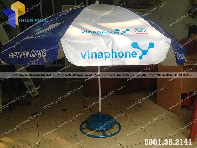 Với khung kèo chắc chắn, đế dù nặng từ 13-15kg, có thể chịu được sức gió. Áo dù được làm bằng vải bạt Hiflex dày 3.2zem, in kỹ thuật số 7200 DPI. Doanh nghiệp đã tận dụng những tán dù để in ấn hình ảnh thương hiệu, logo, slogan của mình lên trên đó sau đó phân phát đến mọi nơi.