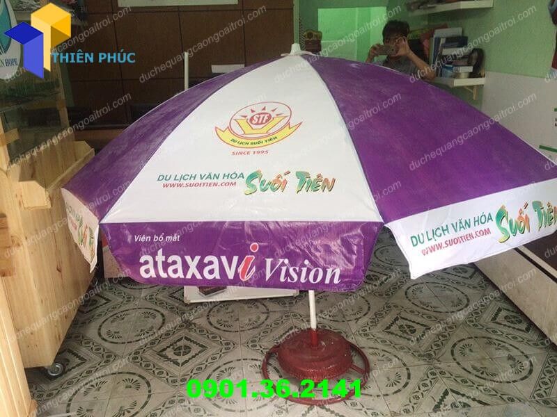 Với một qui mô lớn và phát triển đến vậy khu du lịch Suối Tiên cũng không ê ngại đầu tư những chiếc ô dù che nắng quảng cáo đặt bao phủ để du khách trong quá trình tham quan có thể nghỉ ngơi dưới tán mái của ô dù che nắng quảng cáo.